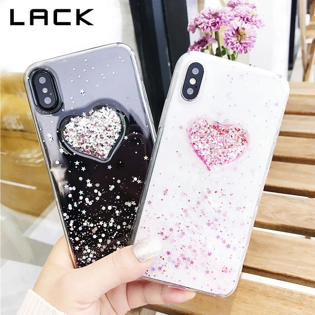 LACK Glitter Bling Star Phone Case For iphone X Case For iphone 6 6S 7 8 Plus Back Cover Cute Love Heart Cases Soft Clear Capa
